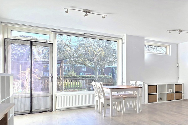 NIET GESCHIKT VOOR WONINGDELERS EN STUDENTEN **Indeling** Via de voordeur bereik je de hal, met direct toegang tot een handige (opslag)ruimte en een eerste separate wc. De doorzonwoonkamer ligt aan de achterzijde en biedt toegang tot de verzorgde achtertuin van circa 45 m². Aan de voorzijde bevindt zich de relatief nieuwe open keuken, compleet met inbouwapparatuur en wasmachine. Onder de trap vind je nog een afgesloten bergkast. Op deze verdieping bevinden zich twee grote slaapkamers aan de voor- en achterzijde, plus een derde, kleinere kamer die uitstekend dienstdoet als werk-, logeer- of babykamer. De badkamer is voorzien van een comfortabele inloopdouche en wastafel. Daarnaast is hier de tweede separate wc, wat het woongemak verhoogt.