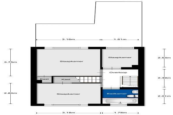 Indeling Hal met originele granito vloer en trapopgang naar de eerste verdieping. Meterkast. Licht betegelde toiletruimte met wandcloset en fonteintje. Royale, aan de achterzijde uitgebouwde woon-/eetkamer met houten vloer en schuifpui naar de achtertuin. Centraal in de woning gesitueerde, half open keuken met vloer betegeling en een lichte keukeninrichting. De keukeninrichting is voorzien van een aanrechtblad met spoelbak, ingebouwd kookplateau (gas), afzuigkap, koelkast en diverse kasten en laden. Modern betegelde badkamer 1 voorzien van douche en wastafel. Overloop met (afgesloten) vaste trap naar de tweede verdieping. Modern betegelde badkamer 2 voorzien van ligbad, wastafel en 2e toilet. Aan de achterzijde gelegen, ruime slaapkamer 1 met laminaatvloer en ingebouwde kast. Aan de voorzijde gelegen slaapkamer 2 met laminaatvloer en ingebouwde kast. Aan de achterzijde gelegen slaapkamer 3. Via vaste trap te bereiken tweede verdieping. Ruime zolderkamer met laminaatvloer, dakkapel, opstelling cv-combiketel en aansluiting voor de wasapparatuur. Op het zuidwesten gelegen, zonnige achtertuin voorzien van berging en achterom. De berging is zowel vanuit de tuin als vanuit de woon-/eetkamer te bereiken.