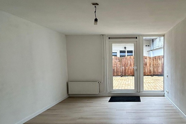 Indeling van deze benedenwoning: U betreedt de woning via de hal. Hier vindt u onder andere de meterkast en de toegang naar de woonkamer. De ruime en lichte woonkamer is voorzien van een nieuwe PVC-vloer met bijpassende plinten, wat zorgt voor een frisse en moderne uitstraling. De keuken, die in 2022 is vernieuwd, is voorzien van moderne, witte kastjes en een strak werkblad. De keuken is uitgerust met een gasfornuis, afzuigkap, vaatwasser, koelkast en combimagnetron, en biedt voldoende opbergruimte voor al uw kookgerei. De woning beschikt over twee slaapkamers, waarvan de vloeren en plinten recent zijn vernieuwd met PVC. Beide slaapkamers liggen aan de achterzijde van de woning. De badkamer is volledig betegeld en heeft een neutrale uitstraling, met witte wandtegels en grijskleurige vloertegels. De badkamer is uitgerust met een douche, badkamermeubel, spiegel, radiator en mechanische ventilatie. De toiletruimte is in dezelfde stijl afgewerkt als de badkamer en is voorzien van een hangend toilet en een fonteintje. De woning beschikt over een ruime en praktische technische ruimte, die tevens als berging kan dienen. Het betreft geen afgesloten ruimte, maar een open ruimte tussen de woonkamer en de slaapkamers. Hier vindt u de aansluitingen voor uw witgoedapparatuur, evenals de Cv-installatie en de mechanische ventilatie-unit. Deze ruimte biedt daarnaast volop plek voor de opslag van uw voorraad, stofzuiger, strijkplank, etc. Aan de achterzijde van de woning bevindt zich een privé patio. Deze is bereikbaar via de slaapkamer en is volledig betegeld, waardoor het onderhoudsvriendelijk is. Let op: er is geen achterom aanwezig, dus fietsen en/of containers zullen door de woning naar de voor- of achterzijde moeten worden verplaatst.