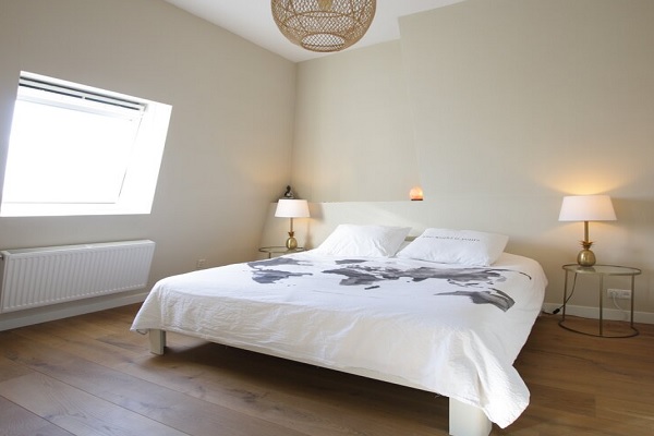 Indeling: Hal met toilet, zeer ruime woonkamer met veel lichtinval dankzij de hoekligging. Moderne zwart uitgevoerde greeploze keuken met alle benodigde inbouwapparatuur, maar ook een wijnkoeler. Via de wenteltrap bereik je de vierde verdieping. Aan de voorzijde een ruime slaapkamer met een tweepersoonsbed en grote inbouw kledingkast. Aan de achterzijde is de tweede kamer, ook van een goed formaat, met een inbouwkast waarin de wasmachine en droger staan. Daarnaast is er vanuit deze kamer toegang tot het ruime dakterras. Tussen de kamers in bevindt de badkamer. De badkamer is luxe gerenoveerd en is voorzien van een douche, ligbad, wastafelmeubel en tweede toilet. De gehele woning is voorzien van een houten vloer.