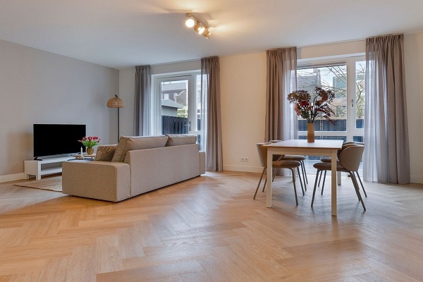 Indeling: Bij binnenkomst betreedt u de gezamenlijke hal op de begane grond. Vanuit hier bereikt u de voordeur van het appartement, gelegen aan de linkerzijde van het complex. Bij binnenkomst in de hal heeft u toegang tot de woonkamer, slaapkamer en het toilet. De ruime en lichte woonkamer is voorzien van een open keuken met een sfeervolle eethoek. De keuken is volledig uitgerust met moderne apparatuur, waaronder een kookplaat, afzuigkap, vaatwasser, oven, koelkast en vriezer – perfect voor liefhebbers van koken. Grenzend aan de woonkamer en keuken ligt de zonnige tuin, een ideale plek om te ontspannen en te genieten van het buitenleven. Daarnaast biedt de woonkamer toegang tot een praktische wasruimte. De ruime slaapkamer aan de voorzijde van het appartement is voorzien van een comfortabel tweepersoonsbed. Vanuit de slaapkamer bereikt u de moderne badkamer, die is uitgerust met een inloopdouche en een stijlvol wastafelmeubel.
