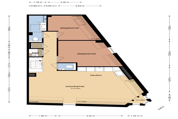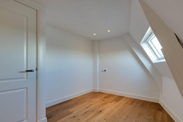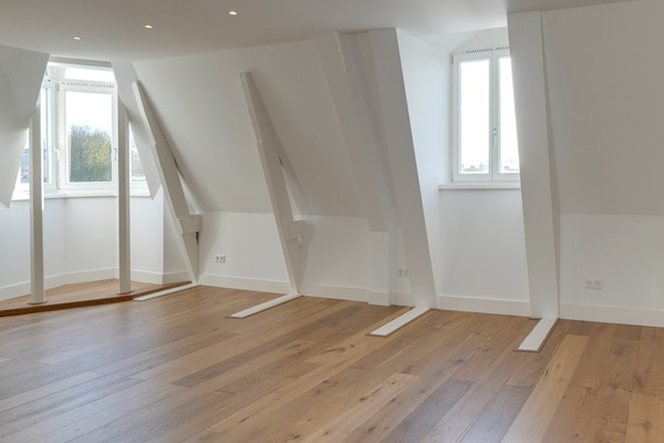 Indeling Gezamenlijk trappenhuis met toegang tot de woning op de derde verdieping. Vanaf hier leidt een interne trap naar het appartement op de vierde verdieping. Bij binnenkomst wordt de hal royaal verlicht door een groot dakraam. Aansluitend tref je de ruime woonkamer met karakteristieke steunbalken en een uniek hoektorentje dat een prachtig uitzicht biedt over de Nassaukade en het Eerste Marnixplantsoen. In de woonkamer bevindt zich tevens de moderne open keuken, voorzien van koelkast, vriezer, vaatwasmachine, combi-oven en inductiekookplaat met intern afzuigsysteem. Aan de achterzijde van het appartement liggen de twee royale slaapkamers en de luxe badkamer, uitgevoerd met een inloopdouche, dubbele wastafel met -meubel en verlichte wandspiegel en toilet. In de hal bevindt zich een tweede separaat toilet, evenals een aparte ruimte voor de wasmachine en/of droger. Elke ruimte is voorzien van dimbare inbouwspots. Door het gehele appartement ligt een fraaie, brede eikenhouten parketvloer met vloerverwarming en alle ramen zijn voorzien van dubbel glas. Geen woningdelers;