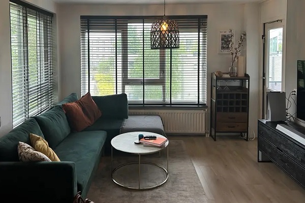 Het 3-kamer appartement is gelegen op de 2e verdieping. De entree is op de begane grond. In het gedeelde trappenhuis bevinden zich de brievenbussen en de fietsenberging. Entree appartment: hal met toegang tot alle vertrekken. Eerste slaapkamer met 2 persoonsbed en kastruimte, apart toilet, luxe badkamer met inloopdouche, wastafelmeubel, designradiator en kastruimte. Kast met de wasmachine en droger. 2e slaapkamer met 1 persoonsbed en kastenwand. Ruime, lichte woonkamer met toegang tot het fijne balkon. Luxe open keuken met inbouwapparatuur zoals vaatwasser, koelkast, vrieskast, oven, magnetron en afzuigkap. Ook hier bevindt zich een balkon.