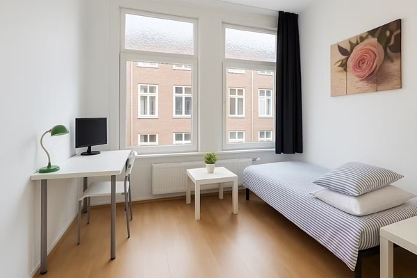 Een prachtige kamer op de 2e verdieping aan de voorzijde van het gebouw. De kamer is gemeubileerd en gestoffeerd. De keuken is recent gerenoveerd en beschikt over alle benodigde keukengerei (bestek etc.), inclusief een vaatwasser. De badkamer is vrij ruim en voorzien van een wasmachine en droger. Beddengoed en handdoeken zijn inbegrepen. Er is ook wifi en een mooi zonnig balkon dat u via de keuken kunt betreden.