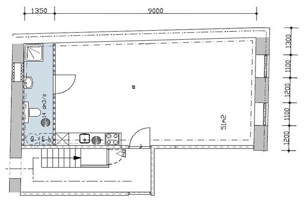 -Verwarming: vloerverwarming. -Airconditioning, Daikin. -Warmtepomp, Daikin. -PVC vloeren. -Video intercom. -RVS hang- en sluitwerk. -Natuurstenen vensterbanken. -Mechanische ventilatie. -Rookmelders door het gehele gebouw. -Voordeur van studio voorzien van driepuntsluiting en cilinder. -Open keuken in hoogglans voorzien van: -Inbouw vaatwasser. -Inductie kookplaat. -RVS afzuigkap. -Koelkast met vriesvak. -Combi oven-magnetron. -Geheel betegelde badkamer voorzien van: -Regendouche, Grohe. -Wastafel met lade en spiegelkast met verlichting, Geberit. -Zwevend toilet, Geberit. -Aansluiting voor wasmachine en wasdroger. -Afgewerkt met grote donkergrijze plavuizen. -Op maatgemaakte glas-en overgordijnen -Privé berging met een elektrische aansluiting(circa 3 x 2 m) op de begane grond. -Een riante buiten patio (circa 55 m2) voor gezamenlijk gebruik. Grote leefruimte, 45 m2 (circa 9.00 x 5.00 m). Badkamer, 4,4 m2 (4.90 x 1.50). De badkamer heeft een installatie kast met schuifdeuren waar achter zich de warmtepomp en de aansluiting voor de wasmachine zich bevinden. Voorzijde: Grote raampartij met uitzicht op de Voorstad.