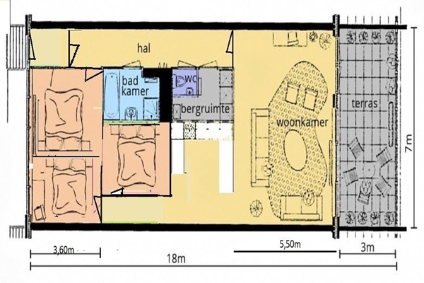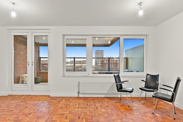 Indeling: bellentableau met lift en trap naar de derde verdieping. De ruime gang leidt naar alle vertrekken. De woonkamer met half open keuken met alle gewenste apparatuur en aansluitend een groot en overdekt terras van ca.24 m2. Er zijn 2 ruime slaapkamers en een kleinere tussenslaapkamer. niet geschikt voor studenten en delers