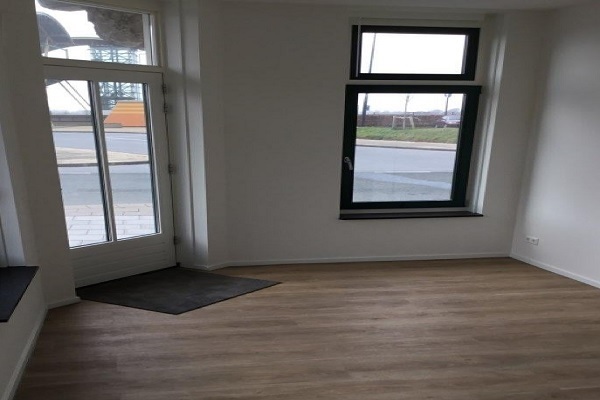 Indeling: Gezamenlijke entree op de begane grond met entree naar de woning. Daar zit de woning aan de linkerzijde van het pand. Woonruimte met open keuken, voorzien van inductiekookplaat, afzuigkap, combimagnetron, vaatwasser, inbouwkoelkast en wasmachine. Badkamer met douche, wastafel en toilet. En een aparte slaapkamer. De woning is netjes afgewerkt met laminaatvloer en vloerverwarming. Er is ook een gezamenlijke berging aanwezig, handig voor fietsen of extra spullen.