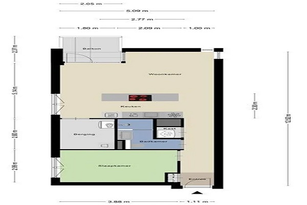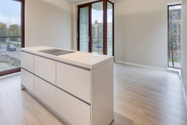 INDELING Woonkamer met open keuken en een luxe kookeiland voorzien van een inductiekookplaat met afzuiging. Verder een koelkast, vaatwasser, oven en voldoende bergruimte. Woonkamer geeft toegang tot een ruim balkon met uitzicht op de 'Groene Loper'. Tevens is vanuit de woonkamer de ruime praktische berging bereikbaar met witgoedaansluitingen en WTW-installatie. Fraaie moderne badkamer met inloopdouche, wastafelmeubel, spiegel met verlichting en toilet. Verder is er één slaapkamer.