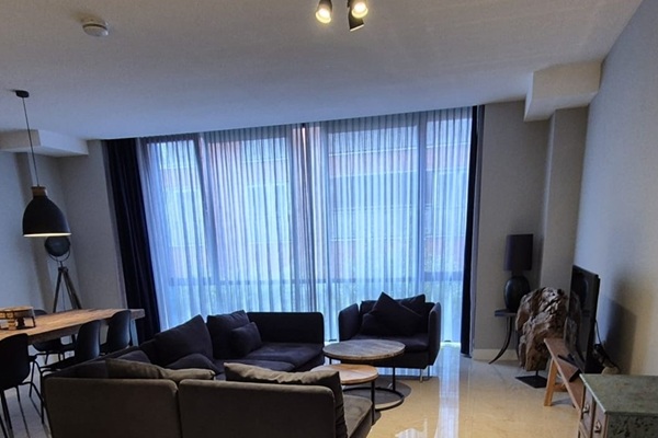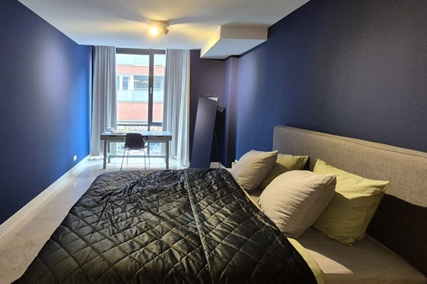 Indeling Gezamenlijke entree op begane grond met lift naar de eerste verdieping. Entree appartement naar hal met toilet en deuren naar alle vertrekken. Ruime woonkamer, volledig ingericht in een moderne stijl. Open keuken voorzien van vaatwasser, oven/magnetron, 4 pits gasfornuis en vriezer/koelkast. Opbergruimte met planken. Ruime hoofdslaapkamer met tweepersoonsbed en kast. De 2e slaapkamer is vrijwel even groot en heeft eveneens een tweepersoonsbed en kast. Badkamer met inloopdouche, wastafel, handdoekradiator en wasmachine/droger. Er is vloerverwarming in het gehele appartement. Dubbel glas. Woningdelen mogelijk tussen twee young professionals