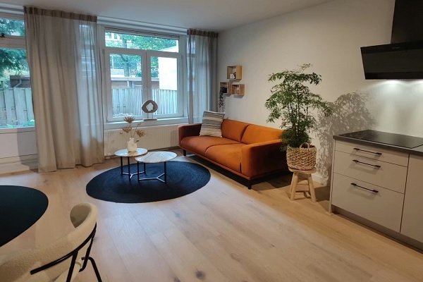 Dit mooie appartement bevindt zich op de begane grond. Het appartement wordt verhuurd met alle benodigde apparatuur. De keuken is volledig uitgerust met een inbouwfornuis, afzuigkap, koelkast en vaatwasser. De wasruimte is voorzien van een wasmachine en droger. De woonkamer is licht en ruim met een groot raam en een comfortabele zithoek, de perfecte plek om te ontspannen na een lange dag. De slaapkamer is voorzien van een tweepersoonsbed, beddengoed en een grote kledingkast voor voldoende opbergruimte. De moderne badkamer met een inloopdouche en een apart toilet zijn bereikbaar via de woonkamer. Geschikt voor stellen of alleenstaanden.