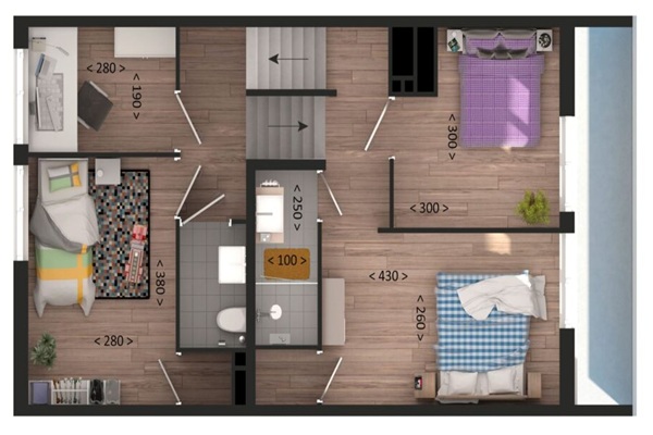 Indeling: •Woonverdieping: Vanuit de hal loop je door naar de woonkamer en de open keuken. De keuken heeft een kookplaat, afzuigkap en een aansluiting voor een vaatwasser. Via de keuken stap je zo het balkon op. •Slaapverdieping: Hier vind je vier slaapkamers en een badkamer met douche, wastafel en toilet. •Begane grond: Je kunt je fiets kwijt in de gezamenlijke fietsenberging. •Je parkeert gratis achter en naast het gebouw. •Het appartement heeft kunststof kozijnen, draai-/kiepramen en dubbel glas. •Je woont in een rustige, groene wijk met alle voorzieningen dichtbij.