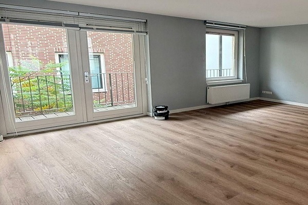 Indeling: Via de centrale entree op straatniveau komt u in de hal die leidt naar een apart toilet en de ruime woonkamer met grote ramen en veel lichtinval. De moderne open keuken is volledig uitgerust met een vaatwasser, inductiekookplaat, afzuigkap en koelkast. Vanuit de woonkamer heeft u toegang tot beide slaapkamers, evenals de badkamer met inloopdouche, wastafel en ligbad – perfect om te ontspannen na een lange dag. Een aparte wasruimte biedt ruimte voor een wasmachine en droger. Het gehele appartement is afgewerkt met een stijlvolle PVC-vloer. Geen woningdelen