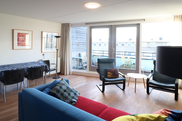 GEEN DELEN MET STUDENTEN Geweldig licht en ruim gemeubileerd appartement verdeeld over de 3e en 4e verdieping, te huur in de populaire Staatsliedenbuurt in Amsterdam, vlakbij de Jordaan. Dit is een geweldige locatie dichtbij het centrum van Amsterdam en toch dichtbij groen en natuur doordat het Westerpark op loopafstand ligt. Winkels, supermarkten, sportscholen en restaurants zijn in de directe omgeving te vinden. Maar de straat zelf is vredig en stil. Openbaar vervoer is vlakbij en tramlijnen op loopafstand.