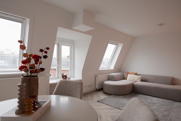 Binnenkomst in nette gemeenschappelijke entree. Appartement op de vierde etage.. Recent gerenoveerd en gemeubileerd. Riante woonkamer met luxe open keuken welke beschikt over alle benodigde (inbouw) apparatuur. 2 ruime slaapkamers met allebei een eigen badkamer. Berging met wasmachine/droger. Dakterras.