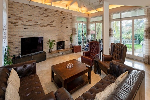 INDELING: Voortuin, entree, hal met vide, meterkast, toilet, toegang tot de woonkamer en de trap naar de eerste verdieping. Het toilet op de begane grond is voorzien van een wandcloset, wasbak, beige kleurige sanitair en betegeling. De woonkamer is ruim opgezet en heeft een speelse indeling. Door de vele rondingen en vele raampartijen is het een sfeervolle living met veel natuurlijke lichtinval. De ruime woonkamer is voorzien van een vaste kast met schuifdeuren, open haard en schuifpuien die toegang bieden tot de tuin en overdekt terras. De gehele begane grond heeft een marmeren vloer met vloerverwarming. De Luxe keuken met kookeiland is voorzien van een inductiekookplaat, plafondafzuiger met afstandsbediening en buitenmuurmotor, combi Quooker, koelkast, vaatwasser, hogedrukstoomoven met liftdeur, oven en veel opbergruimte. Op de begane grond bevindt zich tevens ook de eerste slaapkamer met een eigen afgesloten badkamer die voorzien is van een douche en wastafelmeubel. Overloop met toegang tot twee slaapkamers en een badkamer. De gehele eerste verdieping is voorzien van een laminaat vloer. De eerste slaapkamer is ca. 18 m2 groot. Deze slaapkamer heeft een kastenwand en is voorzien van schuifdeuren en verlichting. De tweede slaapkamer (voorheen 2 kamers) is ca. 24 m2 groot. De badkamer is geheel betegeld en voorzien van een ligbad/douche en 2 wastafels, designradiator, kast voor wasmachine, wasdroger en vloerverwarming. Er is een separaat toilet aanwezig op de eerste verdieping welke voorzien is van een wandcloset en wasbak. Ook is er een vliering aanwezig voor de nodige bergruimte. De grote tuin rondom de woning is deels bestraat en omheind met veel groen. Er is een overdekt terras aanwezig en een steiger voor het aanleggen van een boot. De ligging is ideaal wanneer u graag in de zon zit. In de tuin vindt u een berging waar u bijvoorbeeld uw fiets kunt stallen.