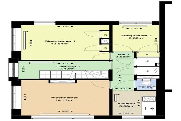 Indeling: Entree op de begane grond, met de trap naar de eerste verdieping; woonkamer en de dichte keuken voorzien van een standaard keukenblok, een separaat toilet met een fonteintje en twee slaapkamers aan de achterzijde, via de interne trap naar de tweede verdieping. Tweede verdieping: Overloop, een slaapkamer aan de voorzijde, de badkamer is voorzien van een douche, een wastafel en een tweede toilet, een slaapkamer en de inpandige berging aan de achterzijde. Geen verhuur aan studenten!; De woning mag door maximaal 2 VOLWASSENEN bewoond worden (kinderen zijn welkom);