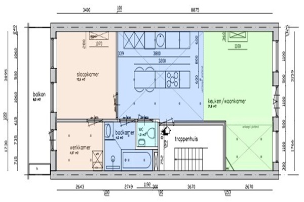 Via de eigen entree met kom je binnen in de ruime hal die toegang biedt tot alle vertrekken. De woonkamer ensuite, met originele schuifdeuren en openslaande deuren naar het balkon, zeer ruim van voor tot achterzijde. Dankzij de brede groenstrook en het water heb je prachtig uitzicht en komt er veel licht de woning binnen. De dichte keuken aan de achterzijde is eenvoudig, maar kijkt uit over het groen aan de achterzijde en heeft toegang tot het balkon. Er zijn twee slaapkamers, één aan de voorzijde (divers te gebruiken ruimte, afsluitbaar) en één aan de achterzijde. De badkamer is eenvoudig uitgevoerd met een bad met douche en wastafel; het toilet is separaat. Het balkon aan de achterzijde heeft voldoende ruimte voor om buiten te genieten van een kop koffie of een drankje. Daarnaast zijn er op de bovenste etage 2 ruime bergingen, een unieke extra.