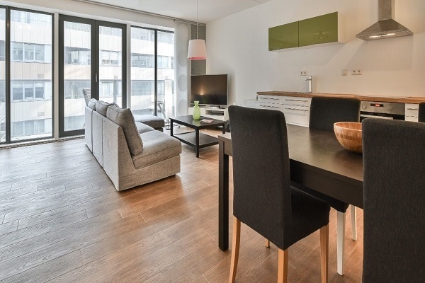 Indeling: Via het gemeenschappelijke trappenhuis of lift bereik je de 9e verdieping waar het appartement zich bevindt. Binnenkomst in de hal vanwaar toegang tot de twee slaapkamers gelegen aan de voorzijde van het appartement. Aan het einde bevindt zich het eetgedeelte met open keuken welke is voorzien van alle inbouwapparatuur. De eetkamer heeft een prachtige glazen wand waardoor de woning zeer licht is en u toegang heeft tot een groot balkon. We vinden de hoofdslaapkamer en de tweede slaapkamer, beide met kasten en tweepersoonsbedden met uitzicht op de balkoningang aan de voorzijde. Badkamer met douche/bad, dubbele wastafel en apart toilet. Wasruimte naast de keuken met wasmachine, tevens een berging op de begane grond van het gebouw. Geschikt voor een werkend stel of alleenstaande Geen delen