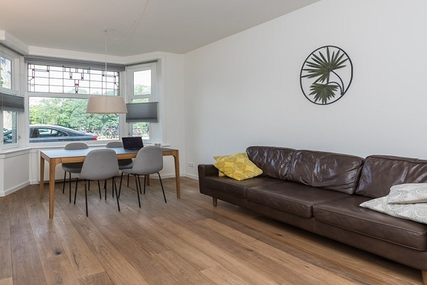 Indeling: Entree via eigen opgang op de begane grond, hal met toegang tot de lichte woonkamer, via een hal in het midden van de woning toegang tot beide slaapkamers met uitzicht op de tuin en de badkamer voorzien van een ligbad, aparte douche, toilet, wastafel en wasmachine, gesloten keuken welke is v.v. koelkast, vriezer, 4 pits gaskookstel, vaatwasser en een oven, riante tuin gelegen aan de achterzijde. De gehele woning is voorzien van dubbele beglazing en houten vloer.