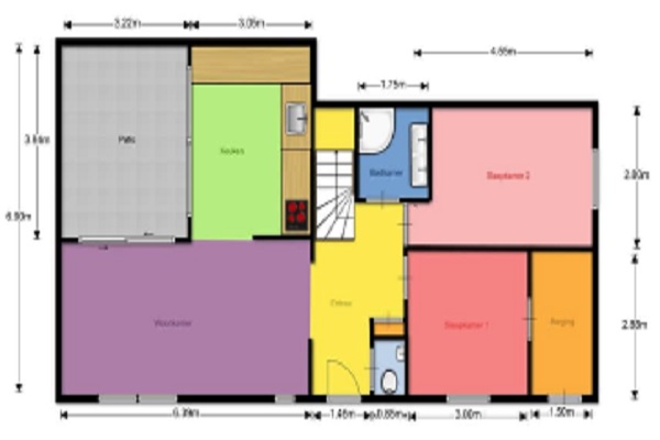 Indeling: Entree, binnenkomst in een ruim3 hal en een toilet met een fonteintje. Vanuit de hal heeft u toegang tot de open keuken en de patio gerichte woonkamer. De keuken, die aan de achterzijde van de woning is gesitueerd, is voorzien van alle gewenste inbouwapparatuur waaronder een 5-pits gasfornuis met magnetron/oven-combinatie, afzuiger, koelkast, vriezer, Quooker en een vaatwasser. Opvallend is de hoeveelheid ruimte en de goede lichtinval. Ook kunt u vanuit de hal de badkamer en 2 slaapkamers bereiken. de slaapkamer aan de voorzijde geeft u ook toegang tot het washok welke echter ook als opslagruimte met aparte ingang gebruikt kan worden. Hier treft u opnieuw een ruime hal met veel opbergruimte welke u toegang biedt tot de derde slaapkamer en het riante dakterras.