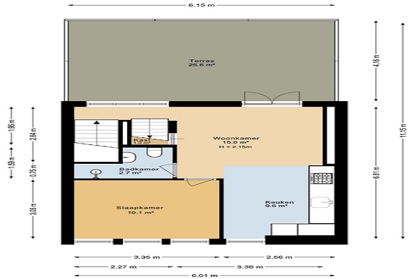 Ruime bovenwoning met tweeslaapkamers en twee badkamers en een riant dakterras. Zeer geschikt voor (maximaal) twee werkende delers. Via de gedeelde entree bereik je met de trap de vierde verdieping. Hier kom je binnen in de lichte woonkamer met open keuken. Dankzij de grote raampartijen geniet je van veel daglicht en een prettig ruimtelijk gevoel. De moderne keuken is uitgerust met inbouwapparatuur, waaronder een koel-vriescombinatie, gaskookplaat, afzuigkap, combimagnetron en vaatwasser. Er is tevens een aansluiting voor een wasmachine aanwezig. De woonkamer geeft toegang tot een riant dakterras, waar je heerlijk kunt genieten van de zon en het uitzicht over de buurt. Op deze verdieping bevindt zich ook een slaapkamer van circa 10 m² en een nette badkamer met douche, toilet en wastafel. Via een interne trap kom je op de bovenverdieping: een ruime tweede slaapkamer van ongeveer 17,5 m² met karakteristieke schuine muren. Deze etage beschikt eveneens over een eigen badkamer met douche, toilet en wastafel – ideaal voor comfort en privacy. Geschikt voor werkende personen
