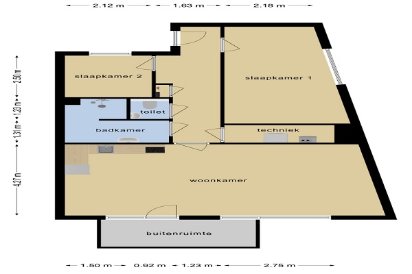 Indeling: Bij binnenkomst via de hal heeft u direct toegang tot alle vertrekken. Aan de voorzijde bevinden zich twee comfortabele slaapkamers. Daarnaast treft u een separaat toilet met fonteintje en een moderne badkamer, uitgerust met een wastafel, inloopdouche en een praktische handdoekradiator. Aan het einde van de hal opent zich de lichte woonkamer met aansluitend een eigentijdse keuken. Deze keuken is volledig uitgerust met een antraciet kunststof werkblad en luxe inbouwapparatuur, waaronder een koelkast met vriesvak, combimagnetron, vaatwasser, inductiekookplaat en afzuigkap. Vanuit de woonkamer stapt u zo uw eigen terras op, een fijne plek om te ontspannen.