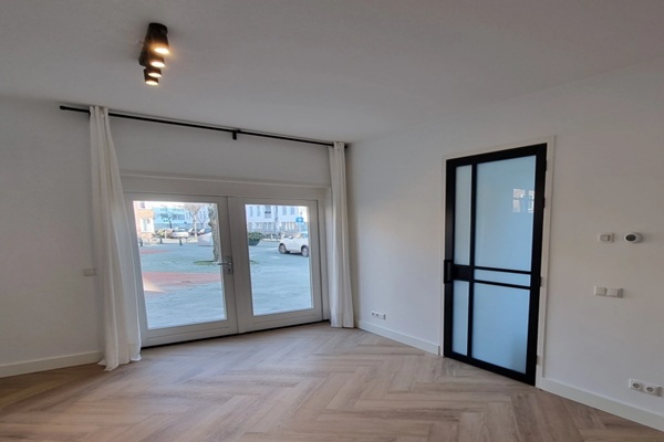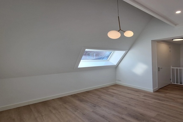 Via eigen entree betreedt u de woning. Via een steellook glazen deur in de hal, waar ook het toilet gelegen is, is de lichte woonkamer met half open keuken toegankelijk met een plafond van maarliefst 5 meter hoog met karakteristiek puntdak. De gehele woning is voorzien van PVC visgraatvloer en vloerverwarming. De moderne keuken in L-vorm is in lichte kleurstelling en voorzien van gaskookplaat, afzuigkap, koelkast, vriezer, magnetron/ovencombinatie en vaatwasser. Op deze etage is tevens een extra opslagruimte gelegen. Via een trap is de tweede etage te bereiken waar de ruime en lichte slaapkamer gelegen is welke is voorzien van een laminaatvloer in licht eiken kleurstelling en raamjaloezieen. Let op: Deze kamer heeft van vide waardoor er een extra slaap/opslagplek is. De badkamer is geheel betegeld in lichte kleurstelling, voorzien van een extra wc, inloopdouche en wastafel met spiegel welke is voorzien van verlichting en digitale klok. Deze unieke woning was oorspronkelijk onderdeel van de Montessori school welke dateert uit 1920. Deze is vervolgens volledig gerenoveerd met behoudt van klassieke elementen. U beschikt tezamen met de overige huurder van dit complex over een uniek, goed onderhouden buitenplaats met tuin welke middels een afgesloten poort te bereiken is. Inclusief eigen parkeerplaats, gedeelde buitenplaats met tuin en externe berging.