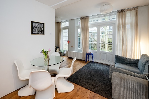 Indeling: Je komt binnen in een open hal die doorloopt naar de woonkamer, logeerkamer en open keuken. De gezellige en lichte woonkamer is gelegen aan de tuinkant. De ruimte is open en knus ingericht, met een comfortabele zithoek. In de hoek van de woonkamer bevindt zich een bureau, ideaal voor wie thuis werkt. De open keuken is van alle gemakken voorzien. Zo beschikt deze over een gasfornuis, oven, afzuigkap, een aparte koel-vriescombinatie en een inbouwvaatwasser. Daarnaast is er voldoende opbergruimte voor al uw keukengerei. De woning heeft twee slaapkamers. De grote slaapkamer is voorzien van een tweepersoonsbed en een ruime garderobekast. De tweede slaapkamer, gelegen tussen de woonkamer en de keuken, beschikt over een slaapbank en kan perfect dienen als logeerkamer of werkkamer. De badkamer is uitgerust met een inloopdouche, een toilet en een wastafel. Daarnaast beschikt de woning over een fijne achtertuin, waar u heerlijk kunt genieten van zomerse dagen en gezellige avonden.