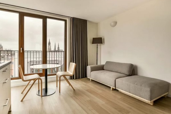 Deze rooftop studio, gelegen op de vierde verdieping van het gebouw, is 28 vierkante meter groot en heeft een terras op het noordwesten. De studio is volledig uitgerust en gemeubileerd met een bed, een bank, een kast, een eettafel en stoelen. De studio is tevens voorzien van handdoeken en beddengoed. Het gebouw is zeer duurzaam en milieuvriendelijk. Uw studio kan zichzelf koelen en verwarmen met de geïnstalleerde airconditioning. De energie die wordt gebruikt, komt van de zonnepanelen op het dak. Het ontwerp van deze is zeer modern en heeft een chique uitstraling. Het Scandinavische interieur zorgt voor veel licht en helderheid in de studio. De ruimte is slim ingedeeld met een bureaubed. Dit meubelstuk fungeert uitgeklapt als een bed (140x200).