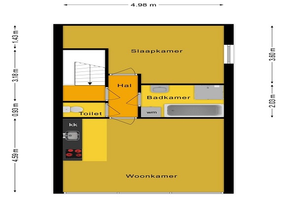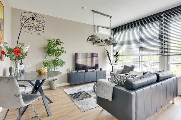 Indeling Gezamenlijke entree met intercom, brievenbussen en trapopgang naar de 1e verdieping. Via de galerij loopt u naar de gezamenlijke entree voor een tweetal appartementen. Eén op de eerste verdieping en één op de tweede verdieping. De gezamenlijke hal is voorzien van eigen meterkast, cv opstelling en internetmodem. Tevens kunt u vanuit de galerij naar de gezamenlijke berging en de afgesloten parkeergarage in de kelder. Vanuit uw eigen voordeur treedt u de hal binnen welke toegang geeft tot de woonkamer, de slaapkamer en badkamer. Vanuit de hal hebt u ook toegang tot de deels betegelde toiletruimte met zwevend closet. Het gehele appartement is voorzien van luxe donker houten pvc vloer. De woonkamer en eethoek is volledig ingericht en voorzien van smart tv, internet en strakke wand- en plafondafwerking. Tevens geniet de woonkamer van veel lichtinval middels de grote raampartijen en vrij uitzicht. De moderne en luxe open keuken is van alle gemakken voorzien. Namelijk een 4-pits gaskookplaat, RVS afzuigkap, combimagnetron, koelkast met vriesvak lades, vaatwasser en alle inventaris die u nodig hebt in de keuken. De ruime slaapkamer met luxe tweepersoons boxspring, ruime kledingkast en een strakke wand- en plafondafwerking en een ruimte voor een werkplek. De slaapkamer met hoge raampartij zorgt voor veel lichtinval in deze ruimte. De geheel betegelde moderne badkamer is uitgerust met een regendouche en handdouche met thermostaatkraan, vaste wastafel met lades, wandkast, ligbad, designradiator, wasmachine en droger.