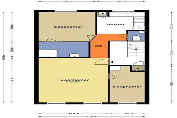 INDELING Entree; hal, ruime lichte woonkamer, keuken voorzien van inbouwapparatuur, toilet, twee ruime slaapkamers. De badkamer met douche en wastafel is bereikbaar vanuit de grote slaapkamer. De zolderkamer is ca. 25 m2 en kan gebruikt worden als extra slaapkamer of studeerkamer. Eveneens bevindt de wasruimte zich op de zolderverdieping.