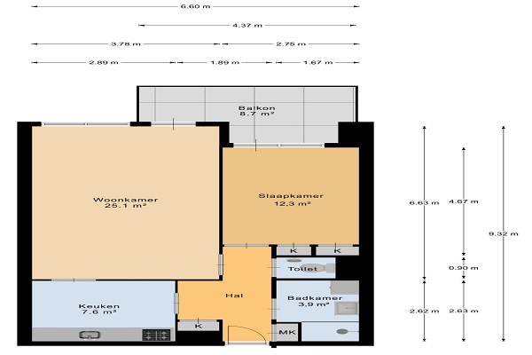 Indeling Via de ingang op de vijfde verdieping betreedt u de hal. Vanuit deze ruimte heeft u toegang tot de keuken, woonkamer, het separate toilet en de badkamer. De open keuken beschikt over een recht keukenblok en biedt toegang tot een balkon op het westen. De erfpacht bepalingen bepalen dat grote appartementen niet verhuurd mogen worden aan alleenstaanden en kleine appartementen niet aan gezinnen. Bij de toewijzing dienen we ons aan deze regels te houden. Dit appartement mogen wij alleen aan alleenstaanden verhuren.