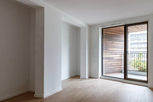 Via de entree stap je binnen in een prettig geheel. De badkamer is stijlvol en fris, met een royale inloopdouche en dubbele wastafel – een plek waar je ’s ochtends ontspannen aan de dag begint. Het toilet zit apart, wel zo praktisch. De slaapkamer is licht en uitnodigend, klaar om helemaal jouw sfeervolle plek te worden. De woonkamer is het hart van het appartement: grote ramen laten het daglicht rijkelijk binnenvallen en creëren een open, warme sfeer. De keuken sluit hier mooi op aan – modern, compleet én gemaakt om in te koken, te borrelen en te leven. Vanuit de woonkamer loop je zo door naar je eigen loggia, waar je drinkt met uitzicht op de groene daken en de rustige binnentuin.