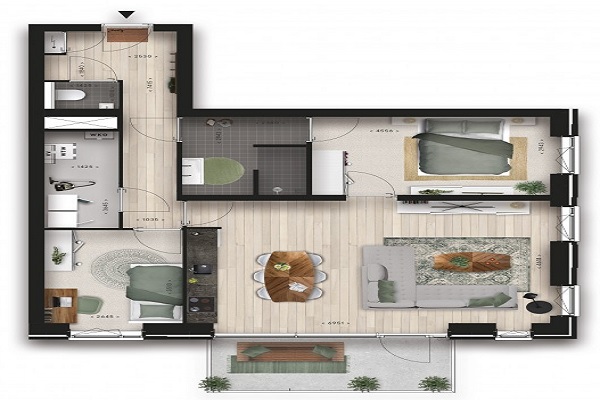 Dit ruime appartement ligt op de eerste verdieping van het complex. De moderne, witte keuken is voorzien van een koel-vriescombinatie, oven met magnetronfunctie, inductiekookplaat en vaatwasser. De badkamer heeft een inloopdouche en een dubbele wastafel met spiegel. Het toilet met fontein is apart. Vanuit de lichte woonkamer stap je zo het ruime balkon op. Daarnaast is er een grote berging binnen het appartement.
