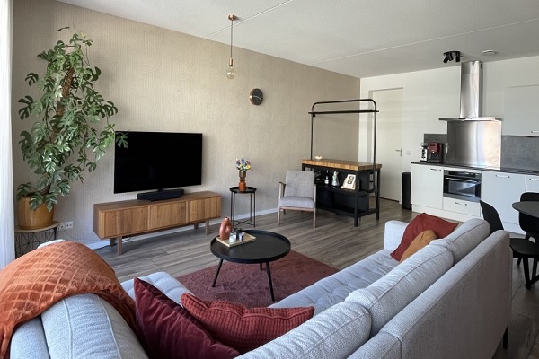 Dit ruime appartement ligt op de eerste verdieping van het complex. De moderne, witte keuken is voorzien van een koel-vriescombinatie, oven met magnetronfunctie, inductiekookplaat en vaatwasser. De badkamer heeft een inloopdouche en een dubbele wastafel met spiegel. Het toilet met fontein is apart. Vanuit de lichte woonkamer stap je zo het ruime balkon op. Daarnaast is er een grote berging binnen het appartement.