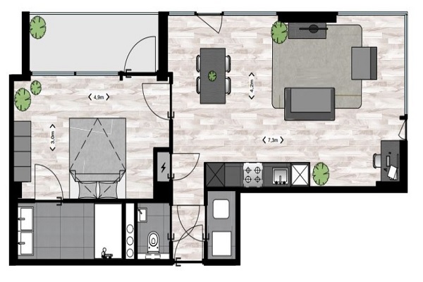De prachtige entree van het complex Nederenck ligt aan de Zwarteweg. Bij binnenkomst zie je natuurlijk de traditionele postkasten maar ook de Bringme Box. Met de Bringme Box kun je je online bestelde pakje gewoon laten thuisbezorgen zonder dat je thuis bent! Woon je op één van de verdiepingen kies dan in de hal tussen de lift of gezond omhooglopen via de trap. Je huurt een appartement volledig gestoffeerd. Er ligt al een PVC-vloer, de wanden zijn voorzien van scan behang, er zijn twee gordijnrails aangebracht waarvan één al is voorzien van in-between gordijnen en je hoeft geen lampen op te hangen want in de plafonds is al LED verlichting aangebracht. Er is zelfs gedacht aan schilderijrails zodat je niet zelf gaten hoeft te gaan boren, wat wil je nog meer! De grote woonkamer is voor zien van een luxe rechte keuken met koel-vriescombinatie, keramische kookplaat, combimagnetron, afzuigkap en vaatwasser van Miele. Vanuit de woonkamer heb je toegang tot de ruime slaapkamer. Vanuit de slaapkamer heb je toegang tot het balkon en de badkamer. In de badkamer vind je een dubbele wastafel met wastafelmeubel, douche met douchegarnituur en douchescherm. Alle appartementen zijn voorzien van een airconditioningssysteem waarmee je op energiezuinige wijze je woonruimte kunt verwarmen, koelen en ventileren.