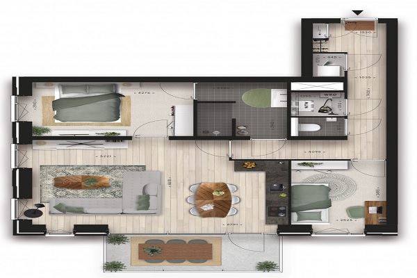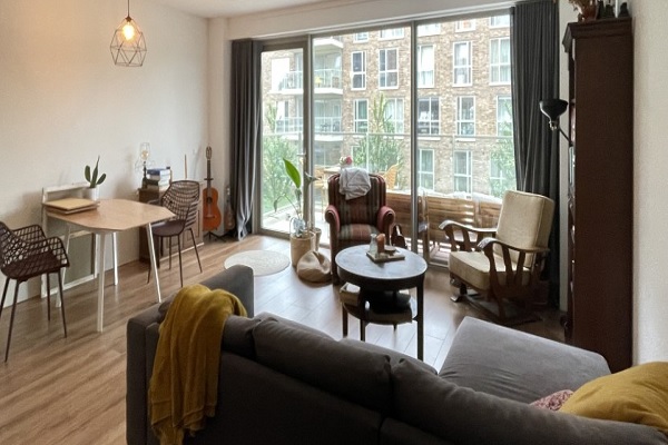 Dit ruime appartement ligt op de eerste verdieping van het complex. De moderne, witte keuken is voorzien van een koel-vriescombinatie, oven met magnetronfunctie, inductiekookplaat en vaatwasser. De badkamer heeft een inloopdouche en een dubbele wastafel met spiegel. Het toilet met fontein is apart. Vanuit de lichte woonkamer stap je zo het ruime balkon op. Daarnaast is er een grote berging binnen het appartement.