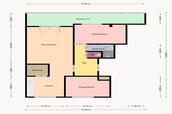 Indeling: Souterrain/ parkeerkelder: In het souterrain bevindt zich een privéberging welke voorzien is van licht en gebruikt kan worden als fietsenberging of als extra opslagruimte. Tevens bevind zich in het souterrain een gezamenlijke fietsenstalling en een parkeerplek. Begane grond: Hoofdingang met bellentableau, brievenbussen, lift en trapopgang. Verdieping: Via de centrale hal/overloop op de verdieping is er toegang tot het appartement. Ruime woonkamer met half-open keuken. De keuken is aan de achterzijde van het appartement gelegen en biedt uitzicht op de groene binnentuin. Naast de keuken bevindt zich de bijkeuken met de witgoedaansluitingen en de unit voor de mechanische ventilatie. De woonkamer grenst aan het inpandige balkon. Het balkon is gelegen op het zuiden. Het appartement is verder voorzien van 2 slaapkamers, een badkamer en een separaat toilet. De badkamer is voorzien van een inloopdouche en een wastafel. Het appartement is niet geschikt voor studenten. Enkel voor een koppel of expat.