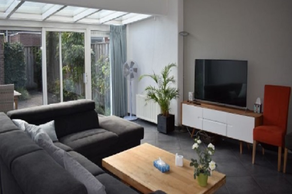 INDELING: Aan de voorzijde bevindt zich de entree, die in directe verbinding staat het tussenportaal met trapopgang naar de 1e verdieping de woonkamer.. Hier bevindt zich eveneens het toilet. De woonkamer is ruim van opzet met aan de voorzijde de keuken en aan de achterzijde het zitgedeelte. Aparte keuken voorzien van een koelkast / diepvries, oven, magnetron, kookplaat en vaatwasser. Vanuit de woonkamer toegang tot de achtertuin met achterom en eigen berging. Overloop met toegang tot een drietal slaapkamers en badkamer. Ouderslaapkamer aan de voorzijde voorzien van een tweepersoonsbed en ruime kledingkast. Tweede slaapkamer aan de achterzijde voorzien van 2 persoons bed en kleding kast. Derde slaapkamer aan de achterzijde. Via vaste trap toegang tot de ruime open zolder. De zolder kan gebruikt worden als werkkamer of als 4e slaapkamer. Hier zijn teven de aansluitingen voor de wasmachine en droger.
