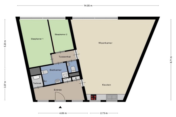 INDELING: Centrale entree met lift en toegang naar de binnentuin Inpandige berging in het souterrain (ca. 6 m²) Entree/hal met meterkast en extra bergruimte, royale, lichte woonkamer van ca. 50 m² met grote raampartijen. Open keuken in hoekopstelling, voorzien van diverse inbouwapparatuur (nieuwe koelkast wordt nog geplaats, combi-oven, afzuigkap, elektrische kookplaat en vaatwasser) Tussenhal met toiletruimte met fonteintje, twee slaapkamers van ca. 13 m² en 6 m² Badkamer met ligbad/douche, wastafel en aansluiting voor witgoed Deze woning wordt verhuurd aan één huishouden