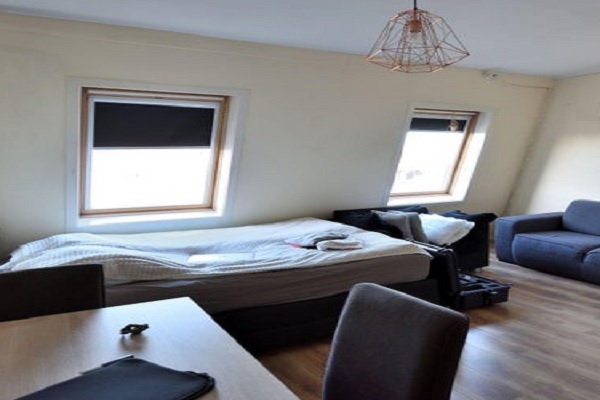 De kamer is gelegen aan de voorzijde op de derde verdieping van het pand. De kamer is voorzien van een eigen wastafel, de keuken, douche en seperate toilet is gelegen op de eerste verdieping. Deze deel je met nog 2 andere bewoners. De keuken is voorzien van een kookplaat, afzuigkap en koelkast. Vanuit de keuken bereik je ook het balkon waar je lekker van het zonnetje kunt genieten. Op de begane grond bevinden zich de wasmachine en droger, tevens bevindt zich hier ook een gezamenlijke berging waar je je fiets kunt plaatsen. Er is ook nog een balkon aanwezig die te bereiken is via de eerste verdieping. Geschikt voor 1 persoon