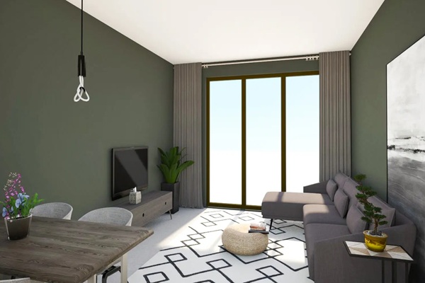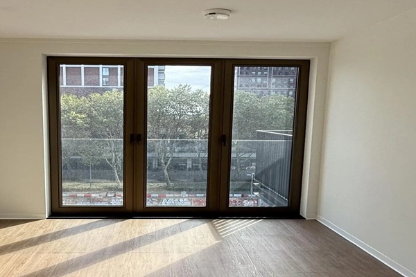 De woning beschikt over een entree/ hal met kast en toilet. Ruime woonkamer met open keuken (L-opstelling voorzien van apparatuur), een ruime geheel betegelde badkamer voorzien van dubbele wastafel, douche, toilet en ruimte voor wasmachine/ droger. Terras via schuifpui bereikbaar, ca. 9 m2 en gelegen op het zuiden. De woning is voorzien van een pvc-stroken vloer in een neutrale kleurstelling, de wanden zijn behangen en de plafond v.v. een fijn korrel spuitwerk. Geen studenten;