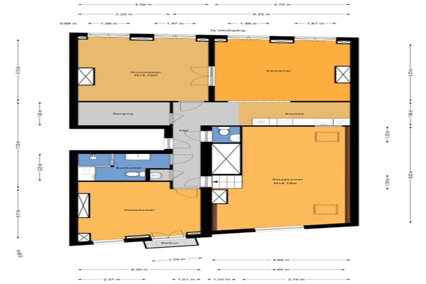 Indeling: Entree op de begane grond met binnentrap naar de 1e etage – entrée woning, lichte en ruime woonkamer ensuite (ca. 4.70 x 4.80m) en (ca. 5.20 x 4.60m) met twee schouwen, Franse balkon. half open nieuwe keuken (ca. 4.80 x 2.00 m) voorzien van koel/vriescombinatie, 4-pitsgas, afwasmachine en oven. Inpandige berging (ca. 3.20 x 1.90m), nieuw toilet met fontein, nieuwe badkamer met douche, wastafelmeubel, tweede toilet en wasmachineaansluiting. Twee ruime achtergelegen slaapkamers (ca. 3.80 x 8.02)m en (ca. 4.00 x 4.30m) met achterbalkon. delers niet toegestaan
