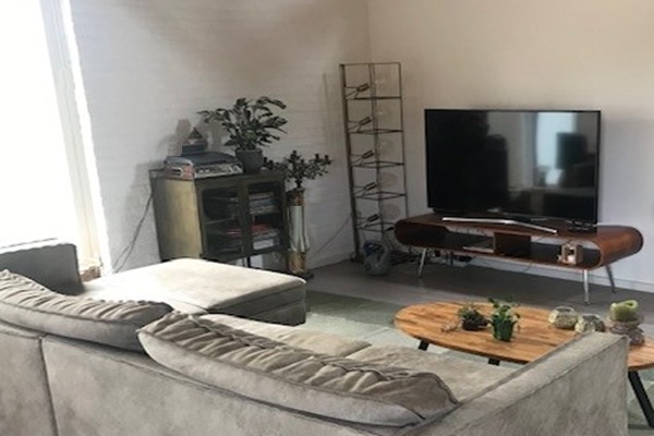 INDELING Het appartement ligt op de begane grond aan de zijkant van het gebouw. Vanuit de hal kom je in de open keuken (voorzien van kookplaat, afzuigkap en koelkast), twee ruime slaapkamers en een doucheruimte met toilet en een wasmachine ruimte. Tot slot…laat je verrassen door de ruime woonkamer met het prachtige hoge plafond en deuren naar het terras. Er ligt een mooie PVC vloer in het hele appartement. Geen studenten- of groepsbewoning