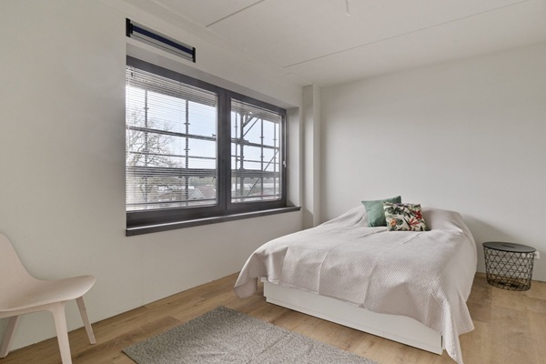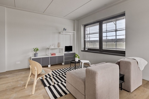 Het appartement is 48 m² groot en heeft een slimme indeling. Als je het appartement betreedt stap je de hal binnen. Hier is de deur naar je eigen luxe badkamer met toilet, wasmeubel en douche. Aan het einde van de hal bevindt zich de open keuken, voorzien van een koelkast en een kleine kookplaat. De woonkamer heeft grote ramen die voor lekker veel licht zorgen. En het uitzicht is overal prachtig. Naast de woonkamer vind je de ruime slaapkamer, groot genoeg voor een bed en een flinke kledingkast. Door het hele appartement ligt al een pvc vloer en alle ramen zijn voorzien van raambekleding.