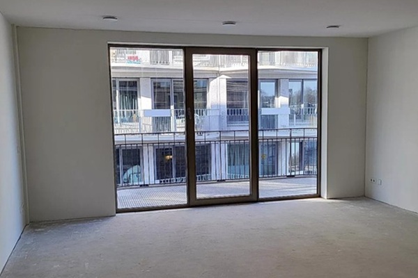 Bij binnenkomst in wooncomplex The Row stap je meteen een lichte, open ruimte binnen. De hoofdentree bestaat grotendeels uit glas en het hoge plafond geeft een ruim gevoel. Bewoners ontmoeten elkaar hier vaak even voor een praatje. De grote boom in het midden van de hal zorgt voor een warme, natuurlijke sfeer. Woonkamer Dit driekamerappartement van ongeveer 79 m² heeft een ruime woonkamer die prettig licht is. Vanuit hier stap je zo het balkon op, dat gunstig op het westen ligt. Een fijne plek om buiten te zitten. Keuken De keuken is onderdeel van de woonkamer en is modern ingericht. Je vindt er een hoogwaardige Bruynzeel keuken met witte fronten en een antraciet composiet blad. De Siemens-apparatuur bestaat uit een vaatwasser, combimagnetron, koelkast, inductiekookplaat en een RVS afzuigkap. Slaapkamers De woning heeft twee slaapkamer. Deze ligt rustig en biedt genoeg ruimte voor een bed en kast, of een extra werkplek als dat gewenst is. Badkamer en toilet De badkamer is afgewerkt met materialen van hoge kwaliteit. Er is een douchehoek en een wastafel. De combinatie van witte wandtegels en matzwarte vloertegels geeft de ruimte een moderne uitstraling. Het toilet is apart van de badkamer.