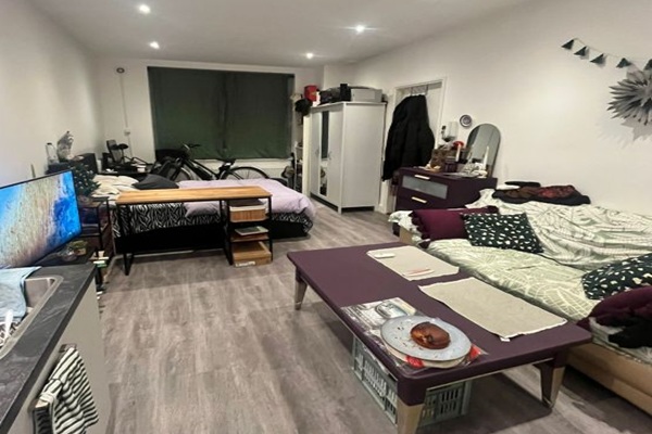 Maximaal 1 persoon Indeling studio: De woonkamer is uitgevoerd met sfeervolle vloerafwerking. De woonkamer geniet veel lichtinval door de grote raampartijen ( dubbelglas). De studio is voorzien van een badkamer met toilet, douche en wastafel. De keuken is gedeeld met 4 huisgenoten. De keuken is voorzien van diverse inbouwapparatuur en gelegen op de begane grond. Internet en tv signaal zijn in de huurprijs inbegrepen.