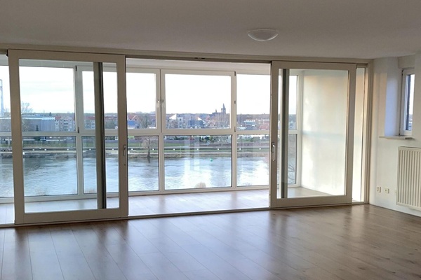 Vanuit de lift komt u bij de voordeur van het appartement. De ruime hal biedt voldoende ruimte voor eventueel een garderobe. Vanuit de ruime hal is er toegang tot de royale woonkamer, waar grote ramen een overvloed aan natuurlijk licht binnenlaten en een gevoel van ruimte creëren. Vanuit de woonkamer is er middels een glazen schuifpui toegang tot de wintertuin met prachtig uitzicht over de Maas. De open keuken wordt op dit moment vernieuwd. Tevens is er een aparte bergruimte met aansluiting voor het witgoed. Het appartement beschikt over 2 slaapkamers en een badkamer met ligbad, douche, wastafelmeubel en toilet. Vanuit de hal is er verder nog toegang tot een separaat toilet met hangcloset en fonteintje.