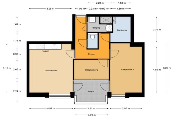 De woning is 63 m2 en is voorzien van een lichte woonkamer met openkeuken, voorzien van inbouwapparatuur. Via de woonkamer heb je toegang tot het balkon. Er zijn twee slaapkamers. De badkamer met inloopdouche en wastafel. Een apart toilet. Daarnaast is er een aparte berging met de plek voor de wasmachine en droger.