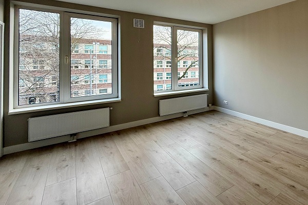 NIET DELEN • GEEN STUDENTEN • GEEN GARANTSTELLERS Dit lichte en charmante appartement wordt ongemeubileerd opgeleverd en is direct beschikbaar voor een minimale huurperiode van 12 maanden. De woning beschikt over twee slaapkamers en een uitnodigende indeling met grote ramen die zorgen voor veel natuurlijk licht. Ongemeubileerd Twee slaapkamers Eén badkamer met inloopdouche, toilet en wastafel Balkon Totale woonoppervlakte 55 m² Gelegen op de tweede verdieping